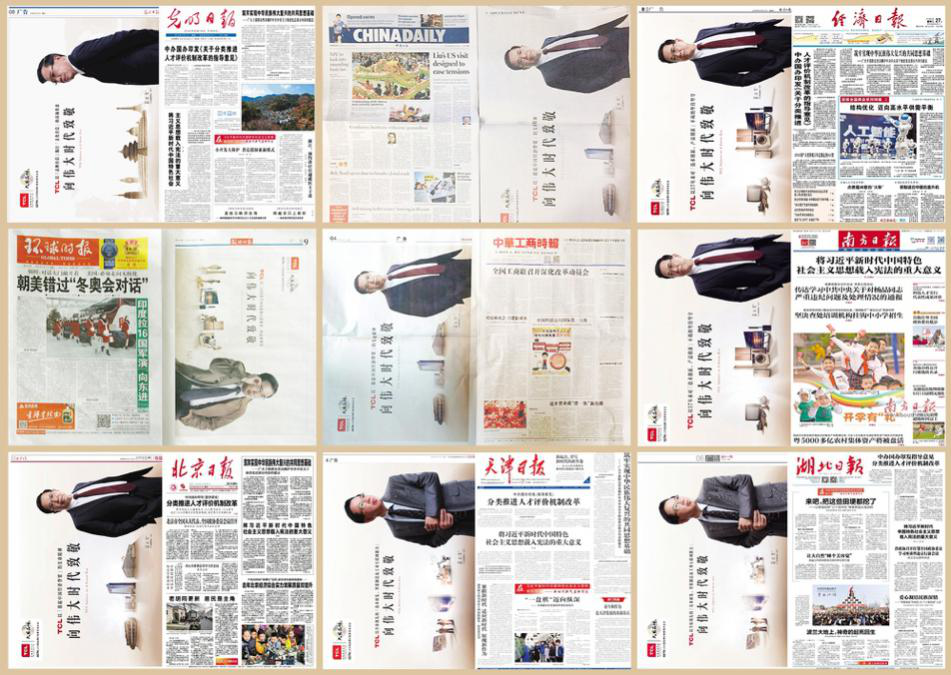 《人民日报》等十大全国核心媒体同时刊出TCL“向伟大时代致敬”的号召